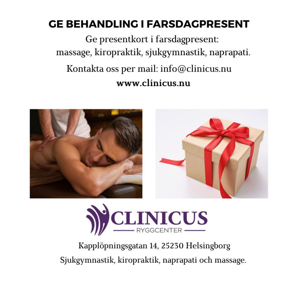 Kontakt oss per mail så hjälper vi dig med ett digitalt presentkort: info@clinicus.nu