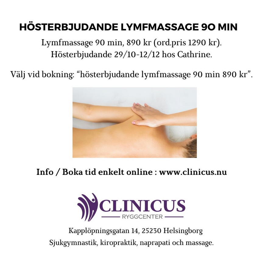 Vid bokning väljer du ”Hösterbjudande lymfmassage 90 min 890 kr”